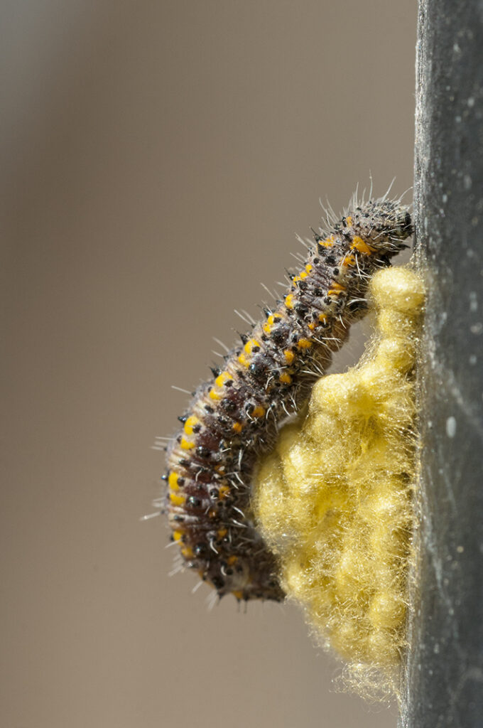 Si bien se las encuentra prácticamente hasta el otoño, septiembre es un mes de abundancia de esta mariposa, es posible tener pupas en nuestras casas adheridas a alguna pared y si prestamos atención hasta podemos llegar a ver cuándo nacen o sus primeras horas de vida ya que en ese momento aún no tiene las alas extendidas para poder volar, proceso que tarda unas dos horas, en esta situación son muy vulnerables así que hay que observarlas con respeto y cuidado.
