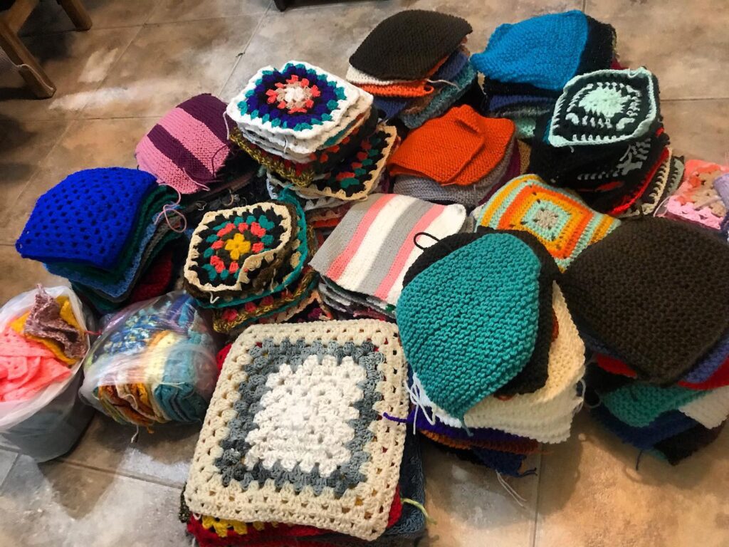 Somos un grupo de tejedoras que recibimos donaciones de lana y cuadrados tejidos de 20×20 con el fin de realizar mantas para donar a la gente que más lo necesita. Nuestra idea es ir ayudando a distintas instituciones a lo largo del invierno. Cada manta está formada por 40 cuadrados.